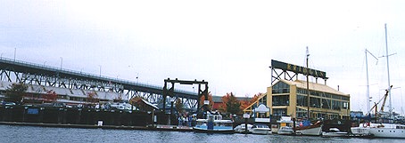 グランビルアイランドへは橋を渡っても行くことができますが、