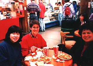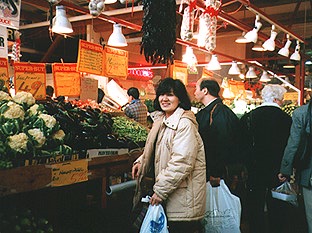 | パブリックマーケットには10月でも豊かな食材がたくさんあります。軽食店はよりどりみどり。大道芸も楽しめます。