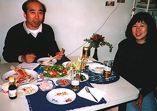 | ダウンタウンに住む弟子の池田さん宅。 買い込んだ食材でホームパーティー。 タラバガニがおいしい。 |